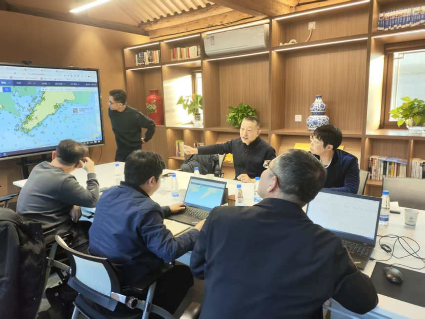 深蓝海工董事长任晋原一行拜会中交水运规划设计院有限公司(中交水规院)2024年12月17日深蓝海工、友发国际一行前往中交水运规划设计院有限公司(中交水规院)进行交流。双方就海上粮仓的选址、海域、浮岛建设、可研编制等事项进行了深入细致的交谈。